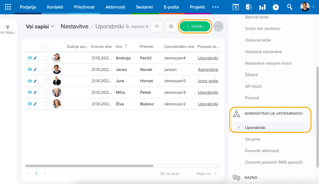 Uporabnike lahko dodajajo in urejajo samo administratorji aplikacije. Ob dodajanju ali blokiranju uporabnika, smo o tem avtomatsko obveščeni.