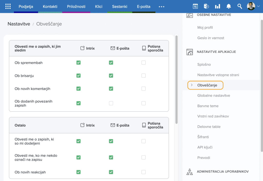 Prejemnik E-Mail obvestila mora imeti v razdelku “Obveščanje”, omogočeno prejemanje takšnih opomnikov. Za bolj podroben opis kako si lahko vsak uporabnik po želji nastavi obveščanje, kliknite tukaj.