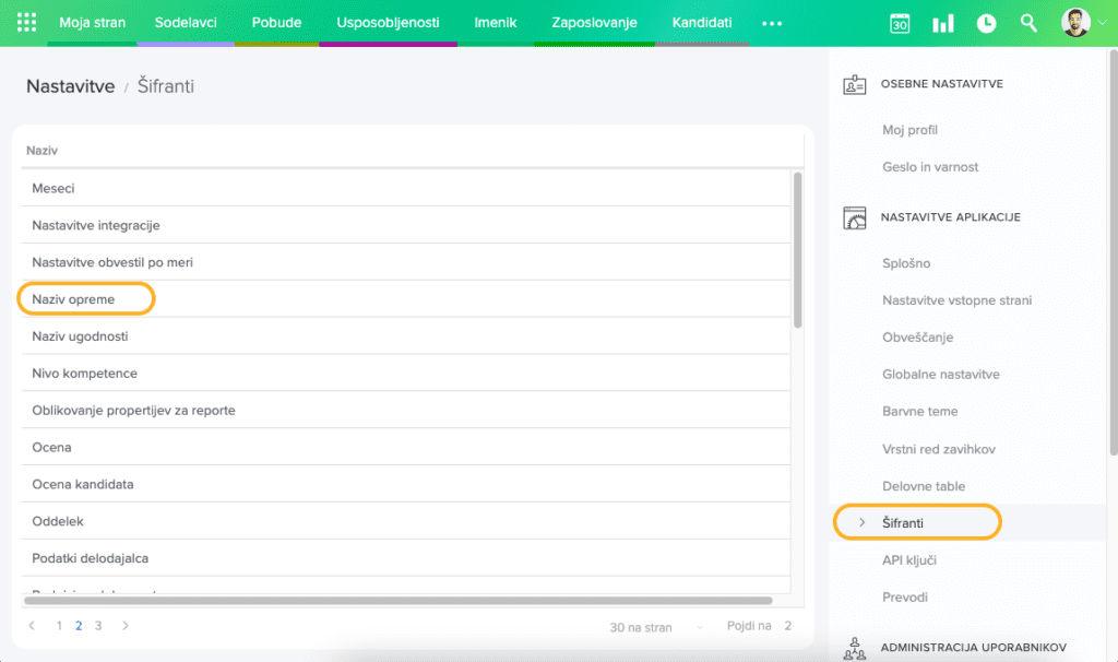 Preden dodelimo opremo zaposlenemu, jo je potrebno najprej vnesti v šifrant pod kategorijo “Naziv opreme“. V ta šifrant vpisujemo vse vrste opreme, ki jih zaposleni lahko prejmejo ob zaposlitvi, kot so računalniki, mobilni telefoni, obutev, oblačila in podobno.